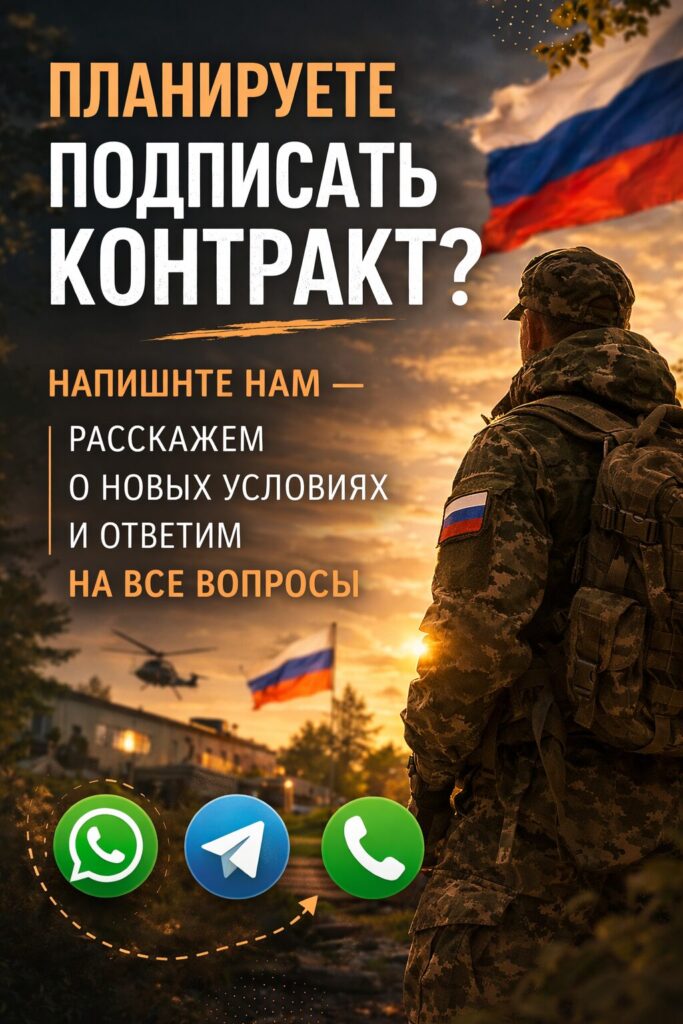 Набор граждан на военную службу по контракту. Доступно более 30 военных специальностей. Ежемесячное денежное довольствие начинается от 210 000 ₽ и может значительно увеличиваться в зависимости от должности, звания и выполнения боевых задач.